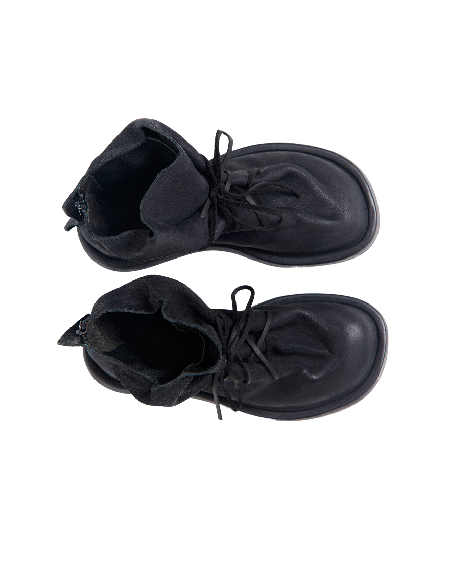 Ботинки из натуральной кожи в стиле гранж. Каждая пара создаётся небольшими тиражами в стамбульских мастерских, где ценят ремесло и внимание к деталям, а также не боятся сложных конструкций и нестандартного дизайна.